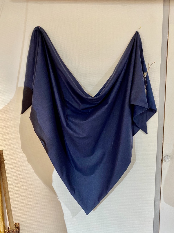 Zum Wenden, eine Seite Loden dunkelblau die andere Seite aus Baumwolle ebenfalls dunkelblau.