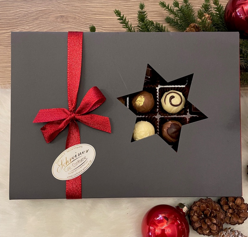 Unsere Pralinen weden durch Handarbeit gefertigt und verpackt. Wir packen auch unsere Leidenschaft zum Genuss für Sie mit ein. In der Pralinenmischung sind auch Weihnachtliche Pralinen enthalten. Wir versprechen ein Geschmacks- und Überraschungserlebnis aus dem Bayerischen Wald.