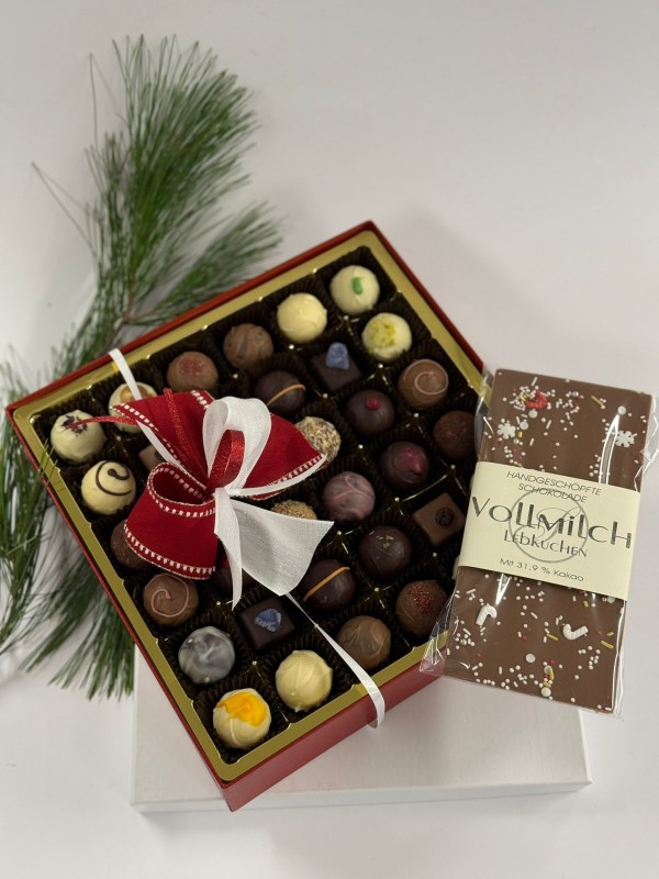 Weihnachtsaktion "nur für kurze Zeit" Pralinenmischung in 72er Schachtel "mit einer Tafel-Schololade Vollmilch-Lebkuchen 80 gr. GRATIS"