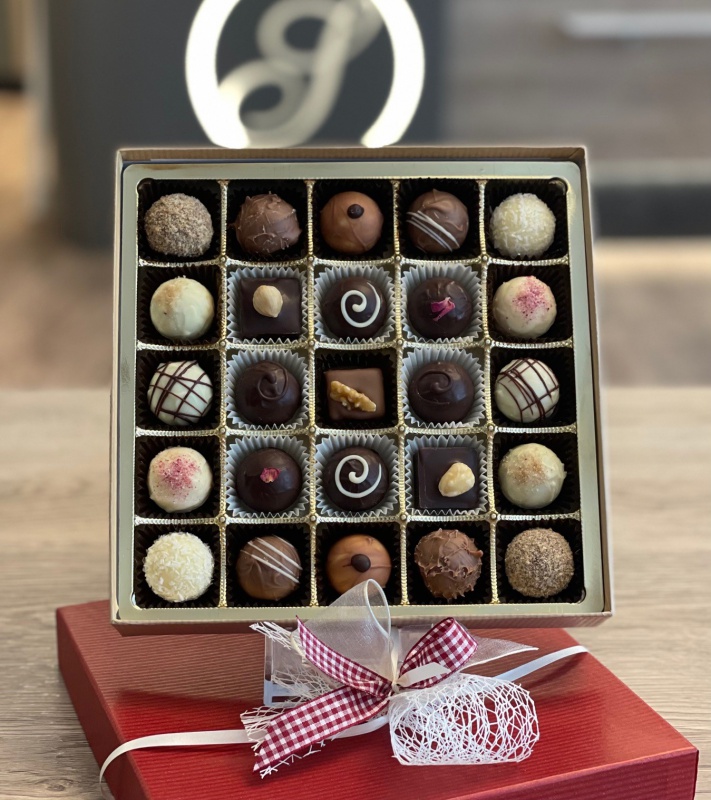 Unsere Pralinen werden durch Handarbeit gefertigt und verpackt. Wir packen auch unsere Leidenschaft zum Genuss für Sie mit ein. In der Pralinenmischung sind auch Pralinen enthalten, die je nach Saison üblich sind. Wir versprechen ein Geschmacks- und Überraschungserlebnis aus dem Bayerischen Wald.