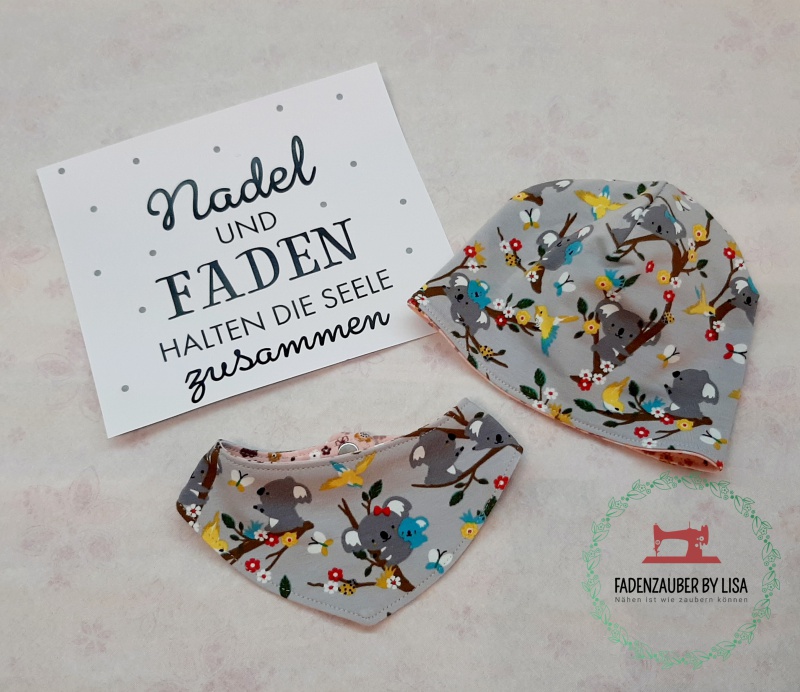 Wendemütze mit Dreieckstuch Gr. 39-42cm (KU) (Innenseite rosa)