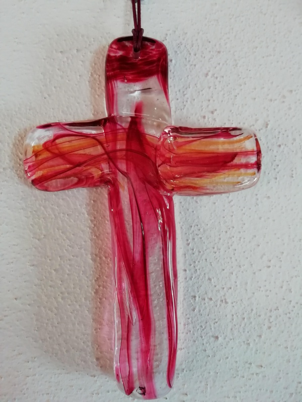 Das Glaskreuz ist massiv gegossen, handgefertigt aus eigener Produktion und ist in verschiedenen Farbkombinationen erhältlich. Höhe ca. 23,5cm
