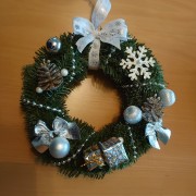 Selbstgebastelter weihnachtlicher Türkranz in der Hauptfarbe Silber.17,00 €inkl. MwSt. und Versand