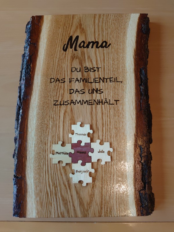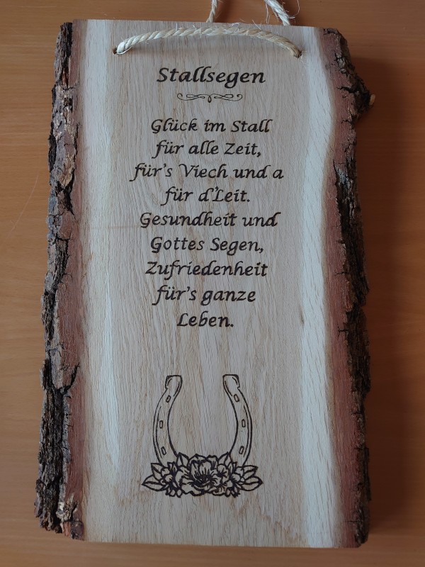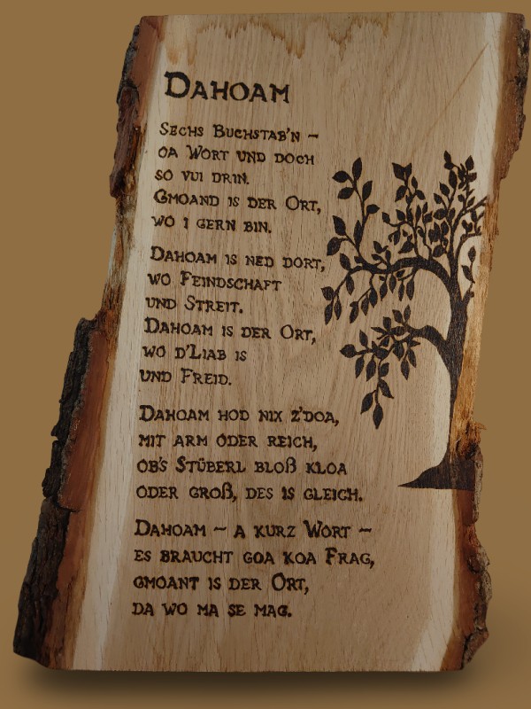 Diese Wanddekoration besteht aus einem Holzbrett, dass individuell nach Wunsch mit einem Spruch und/oder Motiv gestaltet werden kann. Der Spruch/Motiv wird mit einem Holzbrandkolben per Hand in das Holzbrett gebrannt. Es kann zudem die Größe individuell gewählt werden und ob das Holz naturbelassen, lackiert oder geölt werden soll. Die Beispiele auf den Fotos hatten bisher eine Größe von ca. 22 cm lang x ca. 40 cm breit x ca. 2,5 - 3 cm dick. Der Preis variiert je nach Größe, Aufwand und Versandkosten.
