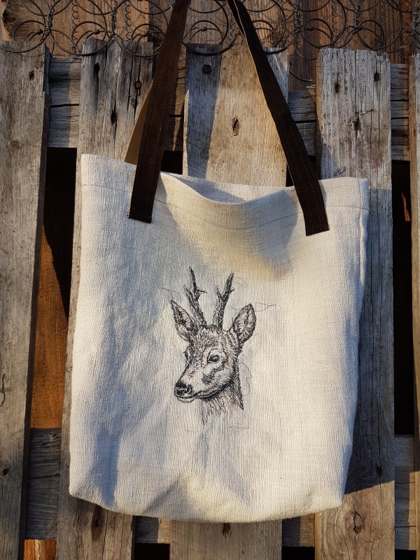 Umhängetasche bestickt mit einem Rehbock.