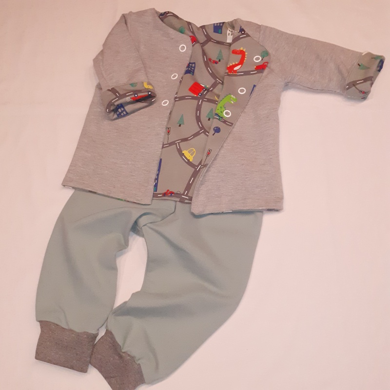 Babyset bestehend aus Jäckchen und Pumphose aus Baumwolljersey
