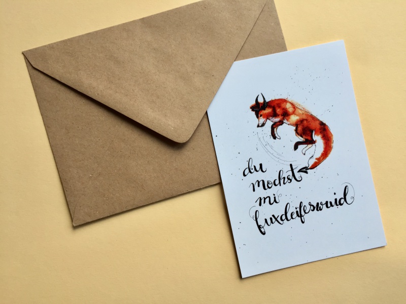 Postkarte „du mochst mi fuxdeifeswuid“
