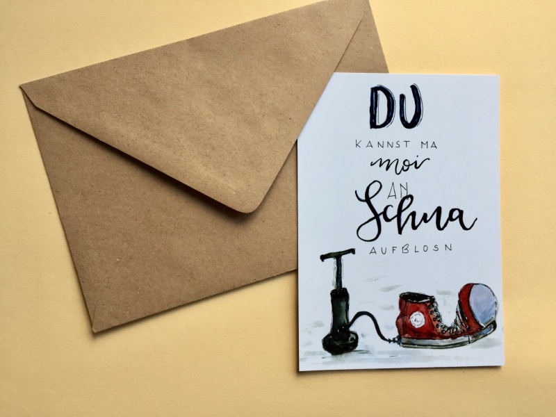 Postkarte „du kannst ma moi an Schuah afblosn“