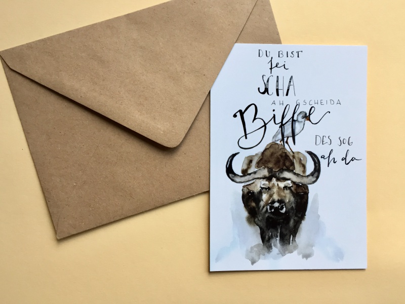Postkarte „du bist fei scha ah gscheida Biffe, des sog i dir“