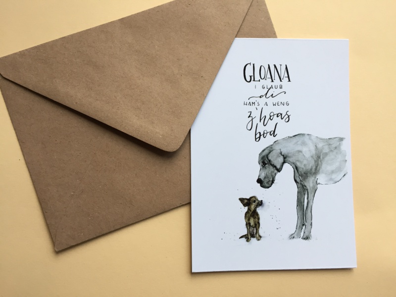 Postkarte „Gloana i glaub di hams a weng z‘ hoas bod“